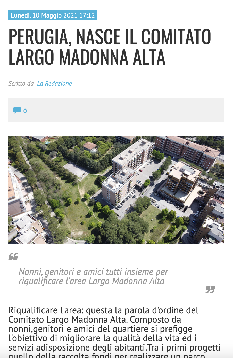 Consulta la Rassegna Stampa del Comitato Largo Madonna Alta. Articoli, video e approfondimenti dal 2021 ad oggi!
